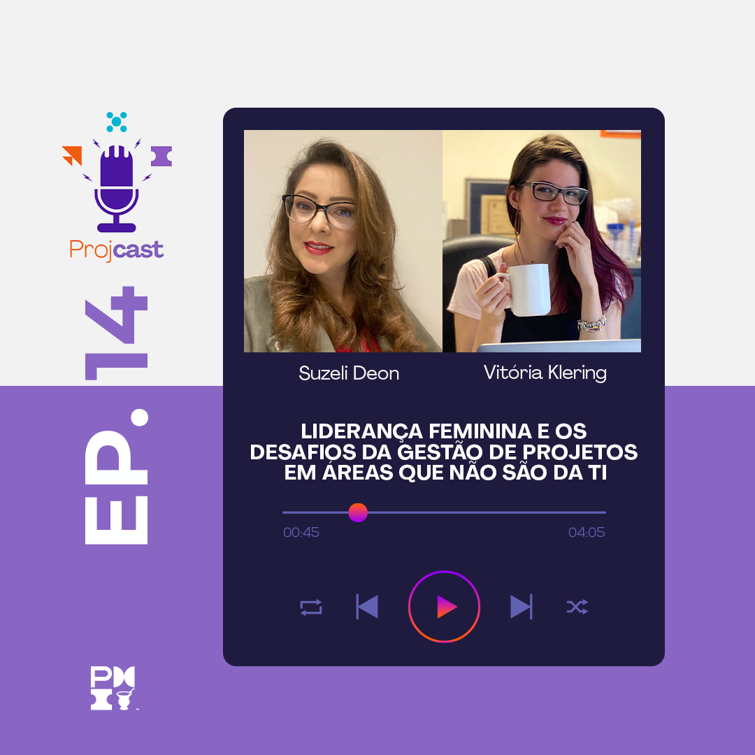 O episódio 14 do Projcast, conta com a participação da gerente de projetos e Líder do PMO de Engenharia, Suzeli Deon, e da Presidente da Asociación Latinoamericana de Estudiantes de Ingeniería Civil e filiada do PMIRS, Vitória Klering. As profissionais debateram sobre liderança feminina e sobre os desafios da gestão de projetos em áreas que não são da TI. Aboradaram assuntos relacionados a ferramentas de gestão, metodologias e Projetos de Engenharia e Mobilidade Urbana..