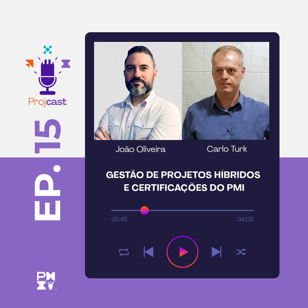 O 15º episódio do #Projcast já está disponível nas plataformas digitais. Nesta edição, Carlo Turk entrevistou João Oliveira sobre Gestão de Projetos Híbridos e Certificações do PMI. O episódio abordou temas como a trajetória profissional do entrevistado, métodos e metodologias utilizados no dia a dia para gerenciar projetos ágeis, tradicionais e híbridos, liderança e a importância das certificações do PMI®.